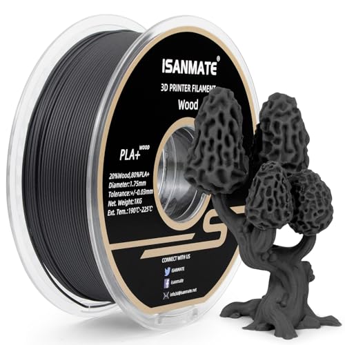 iSANMATE Träfilament 1.75 PLA+, Ebony Trä PLA+ Filament 3D-skrivarfilament, Wood PLA+ Filament 1kg/Spool (20% Träpulver+80% PLA+)