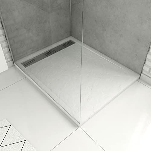 Aurlane extra bricka för att placera 100 x 80 cm - vit akryl halkfri steneffekt - måne