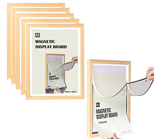 TUKA [6x] Naturträram med dokument, A3 utbytbar ram med akrylomslag och magnetisk stängning, självhäftande väggram för att placera fotoaffisch, snabb förändring, TKD8401-A3-6X