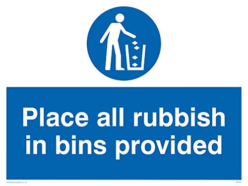 Vikingskyltar MV311-A3L-3M "Placera alla skräp i burken tillhandahålls"-skylt, 3 mm styv plast, 300 mm H x 400 mm B