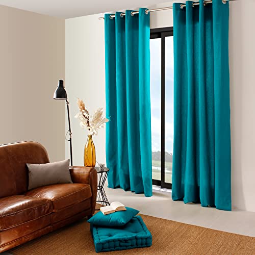 ED ENJOY HOME - gardin - bomull - 135 x 240 cm - blå anka - Panama kollektion - redo att placera - tvättbar vid 30 ° - för alla rum - hushållslinne - kudde