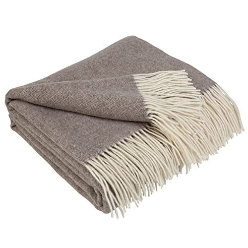 LYHome Merino ull Pläd - Filt med Fransar. Yllefilt Perfekt för Soffa, Säng, Vardagsrum, Sovrum, för Dekoration och Som Gåva. Varm, Mysig och Mjuk Pläd (140 cm x 200 cm/Beige med Vitt)