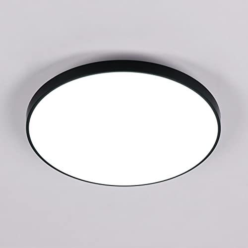SENQIU Rund LED-taklampa, 24W 6500K Kallt Ljus LED-taklampa Modern Svart Vattentät IP54 För Badrum, Sovrum, Vardagsrum, Korridor Ø27CM