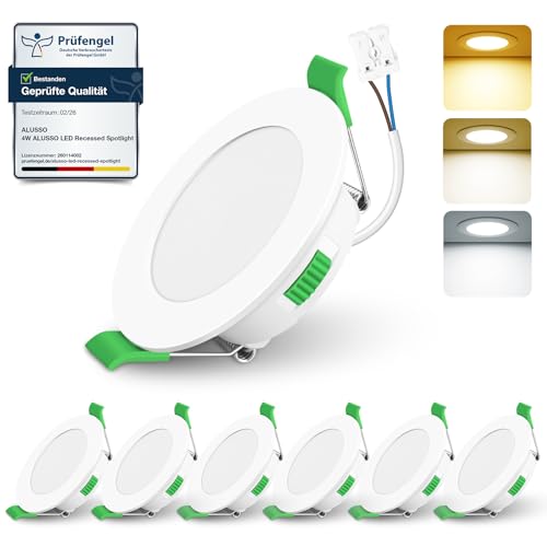 ALUSSO Light Spot LED Encastrable, 4W 310lm, Dimbar 3000K-6500K, IP44, Eclairage de Plafond pour Salle de Bain et Salon, Lot de 6, Blanc