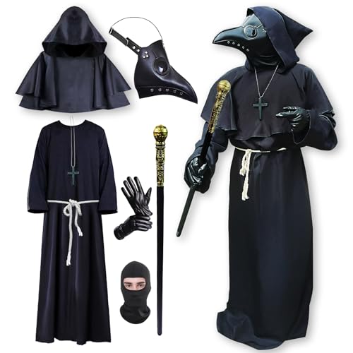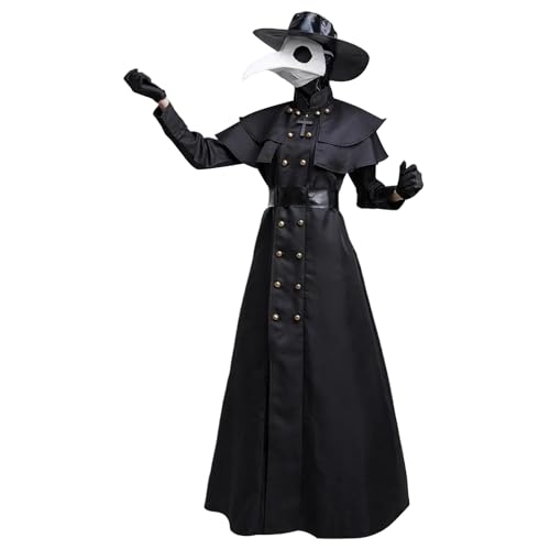 Pesoncarl Plague Doctor kostym för vuxen punk läskig plågläkare inkluderar hatt, mask, handskar, klänning, bälte och huva halloweenkostymer för cosplay, utklädning, filmrekvisita, M, Halloween 2025
