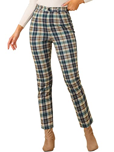 Allegra K Women's Plaid Pants High Waisted Vintage Tartan Checkered Cropped Casual Work Pants Large Green
