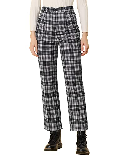Allegra K Women's Plaid Pants High Waisted Vintage Tartan Checkered Cropped Casual Work Pants Medium Black