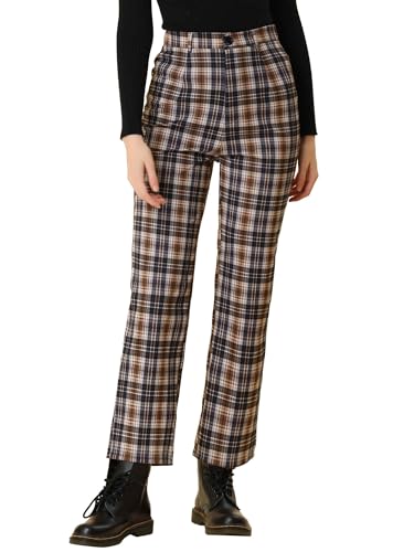 Allegra K Women's Plaid Pants High Waisted Vintage Tartan Checkered Cropped Casual Work Pants Medium Brown
