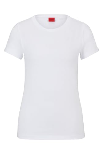 HUGO Damer The Plain T-shirt av bomullsjersey med logotyptryck, vit100, L