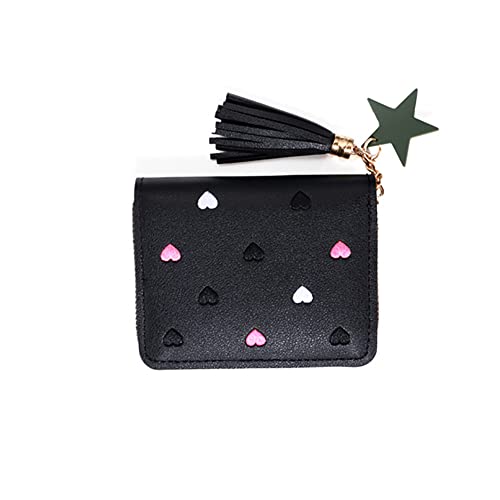 Dam Miniplånbok i PU-Läder för Flicka med Hjärtmönster - Kort och Mynt Plånbok för Barn - Jul och Födelsedag Present, Svart