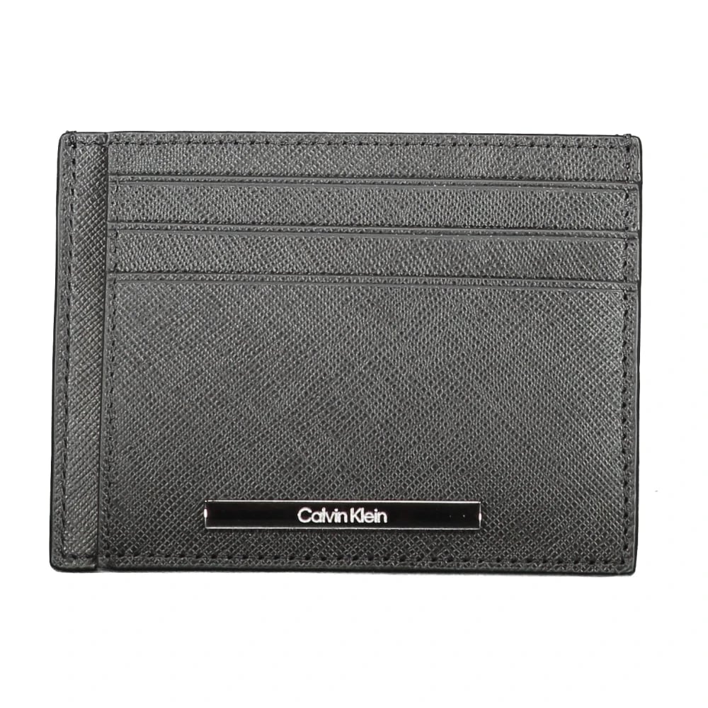 Calvin Klein, Accessoarer , unisex, ONE Size, Herr Plånbok Svart Korthållare Kontrast Logotyp