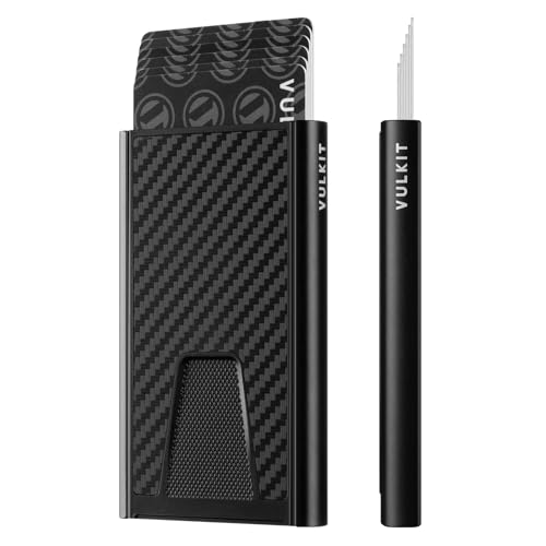 VULKIT Kreditkortshållare i aluminium RFID-blockering, smal POP UP plånbok för män, Kolsvart, No Clip, Minimalistisk