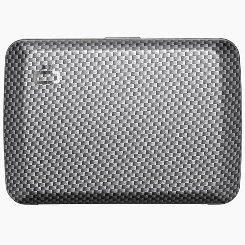 OGON Smart Case V2 plånbok i aluminium, metalllås, enkel förvaring, RFID-korthållare med kapacitet upp till 10 kort och sedlar, Tryckt koldioxid taft, Unique, Minimalistisk