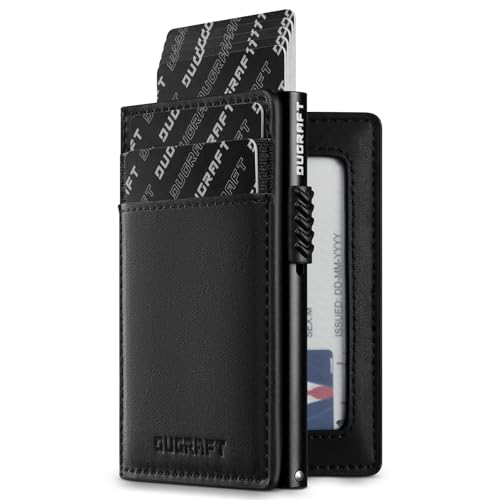 DUGRAFT Slim Korthållare för 10 Kort med POP-UP Kortfodral i Aluminium, RFID-blockering, ID-fönster och 4 Kortplatser, Minimalistisk Plånbok i Framficka för Män, Svart