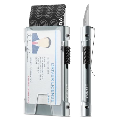 VULKIT Minimalistisk plånbok för män, pop-up smal RFID-blockerande kortplånbok, RFID-kreditkortshållare i metall för män, aluminium med ID-fönster, tunn plånbok för kort, kompakt, cool, Rymdgrå med