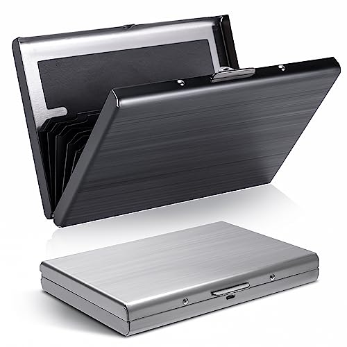 Cobee kortfodral kreditkort, 2 stycken RFID-kreditkortsfodral i metall skydd visitkort plånbok smal ID-kortshållare 6 kortfack för kvinnor, män (svart + silver)