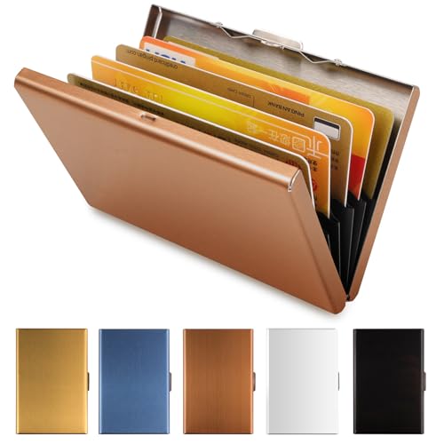 Vicloon Korthållare i metall, plånbok med kortfack, ultratunn, i rostfritt stål och metall, med RFID-blockering, kreditkortshållare för män och kvinnor, bästa kortskyddet med 6 PVC-spår och rostfri