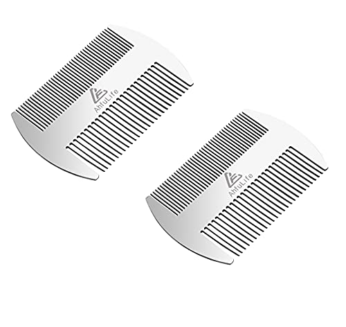 Rostfritt stål metall hår & skäggkam – antistatisk dubbelverkande skäggkam – kreditkortsstorlek kam perfekt för plånbok och ficka – presenteras i presentask