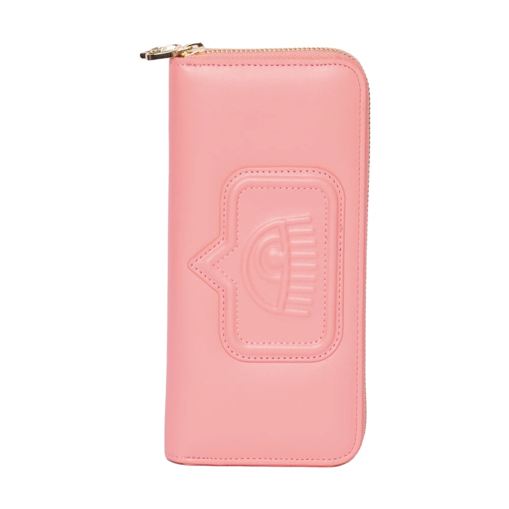 Chiara Ferragni Collection, Accessoarer , Dam, ONE Size, Läder, Eyelike Plånbok med dragkedja i Laxrosa