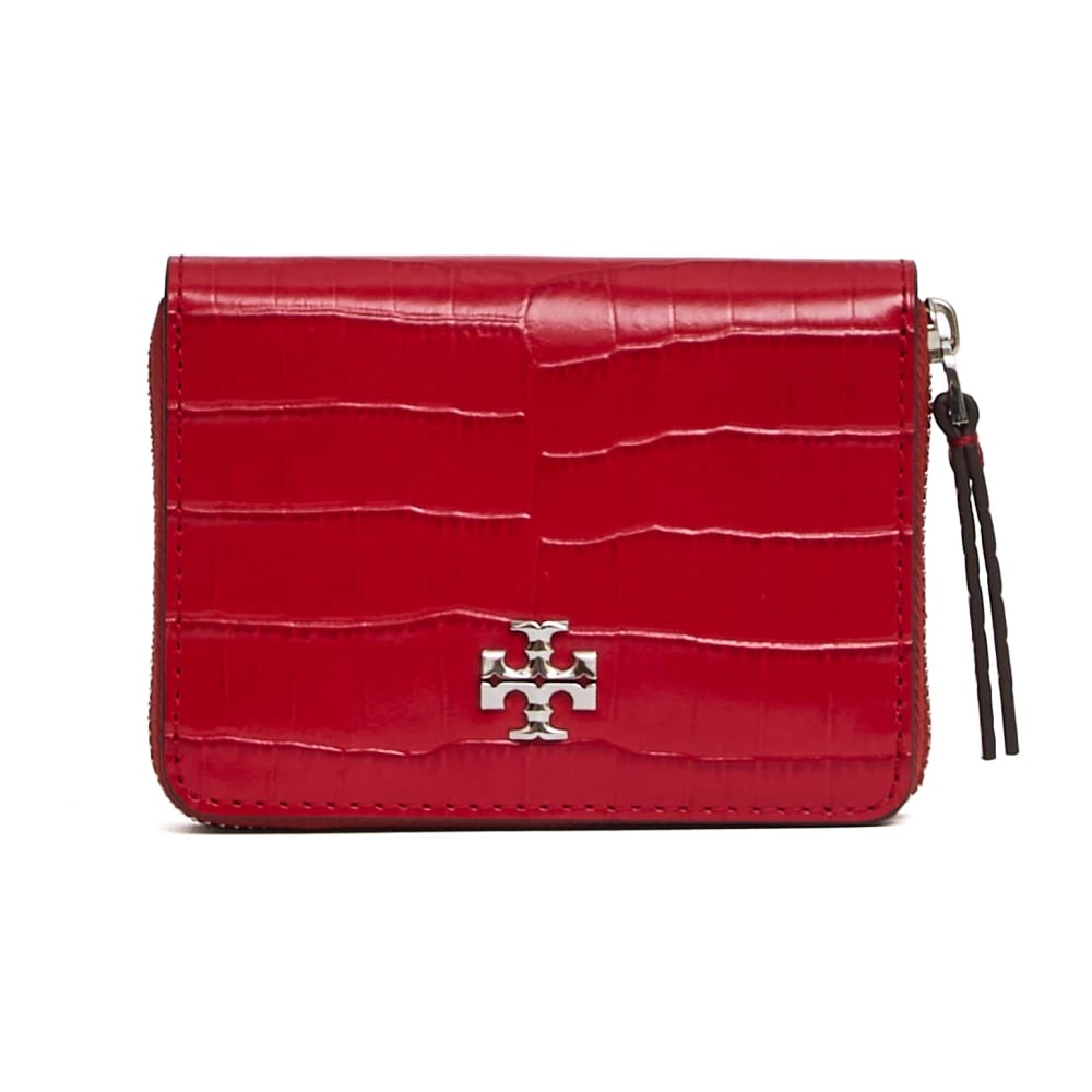 Tory Burch, Accessoarer , Dam, ONE Size, Röd Krokodil-Effekt Plånbok med Dragkedja