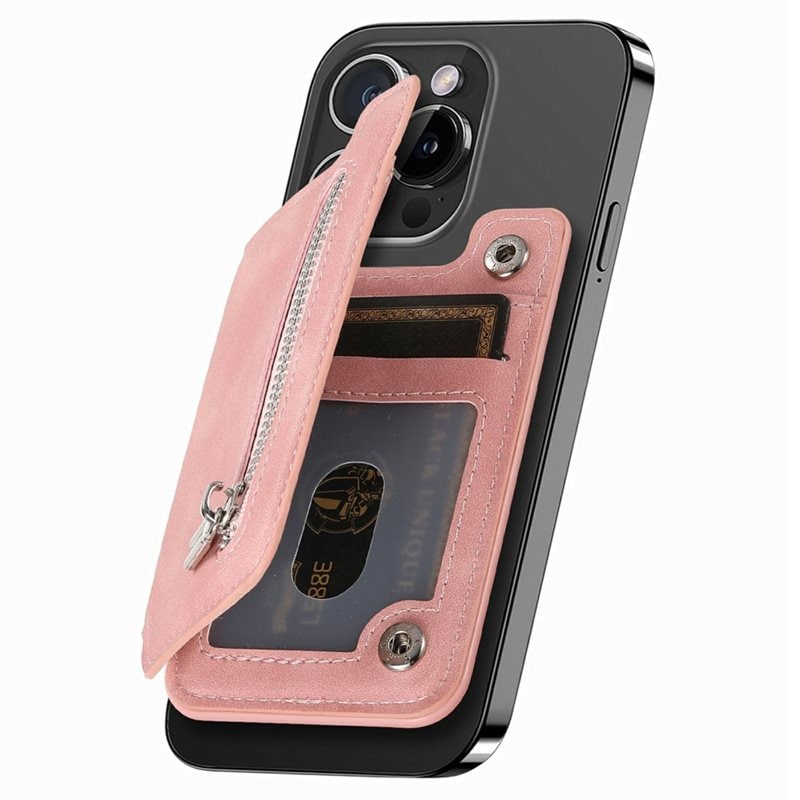 MagSafe Plånbok med dragkedja och ställ, rosa