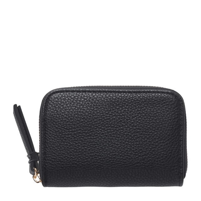 Liten plånbok / korthållare med dragkedja Äkta Läder Svart