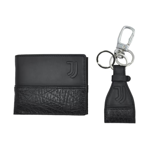 JUVENTUS Set för plånbok och nyckelring i 100% läder 133447, Svart, Standard, Samtida