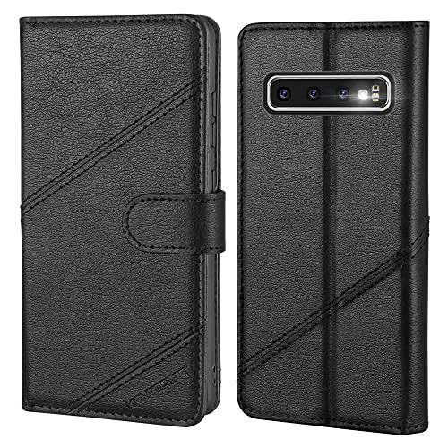 KRAFTCARE Fodral till Samsung S10 Plus med skärmskydd, PU-läder Galaxy S10 Plus telefonfodral, flip plånbok stöttåligt fodral med ställ kortplats skyddande fodral för Samsung Galaxy S10+, svart