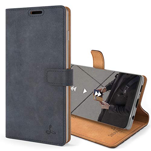 Snakehive Vintage plånbok för Samsung Galaxy S10 || Plånbok i äkta läder || Äkta läder med visningsstativ och 3 korthållare || Flip Folio fodral med kortplats (marinblå)