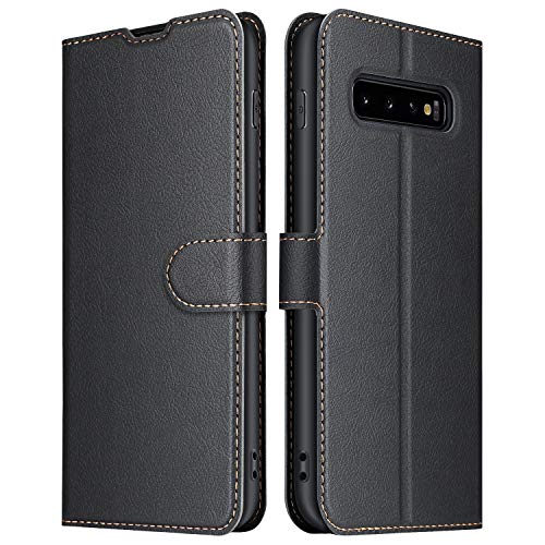 ELESNOW fodral till Samsung Galaxy S10, premium läder plånbok flip fodral skydd magnetisk stängning kompatibel med Samsung Galaxy S10 (svart)