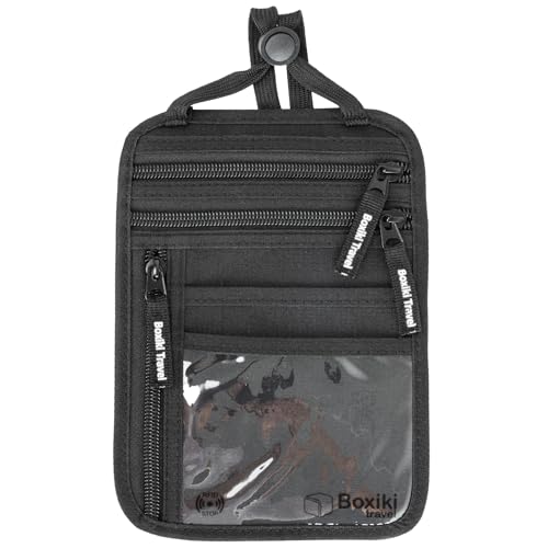 Boxiki Dolt resebälte för män och kvinnor – RFID-blockerande midjeväska för pass, plånbok och telefon – säker och säker för resor, Nackplånbok (svart)