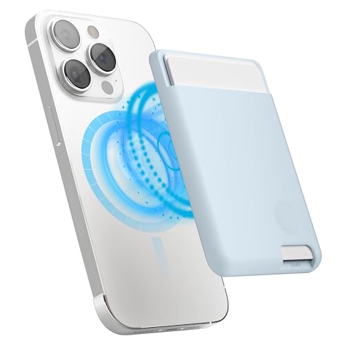 elago Magnetisk plånbok/korthållare 2-kort kompatibel med MagSafe för iPhone 17/16/15/14/13/12 – säker telefonplånbok, hållbar silikon, repskydd/skadeskydd (Ljusblå)