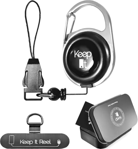 Keep It Reel Komplettset: Utdragbar Mobilhållare med Clipsfäste & Rostfri Adapter – Säker på Resan – Plånbok, Nycklar & ID-Hållare | Svart Edition – Viktigt Tillbehör för Mobilskydd