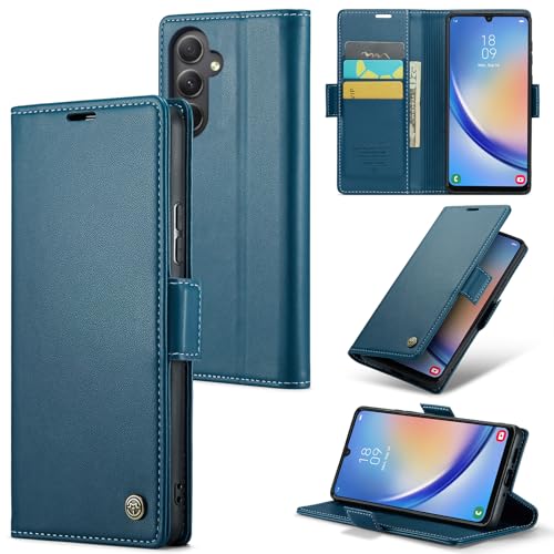 Rerzoiro fodral för Samsung Galaxy A34 5G, premium PU-läder telefonfodral med RFID-blockering, ställ, kortplats, magnetiskt skydd, flip bok plånboksfodral för Samsung A34 5G, Blå