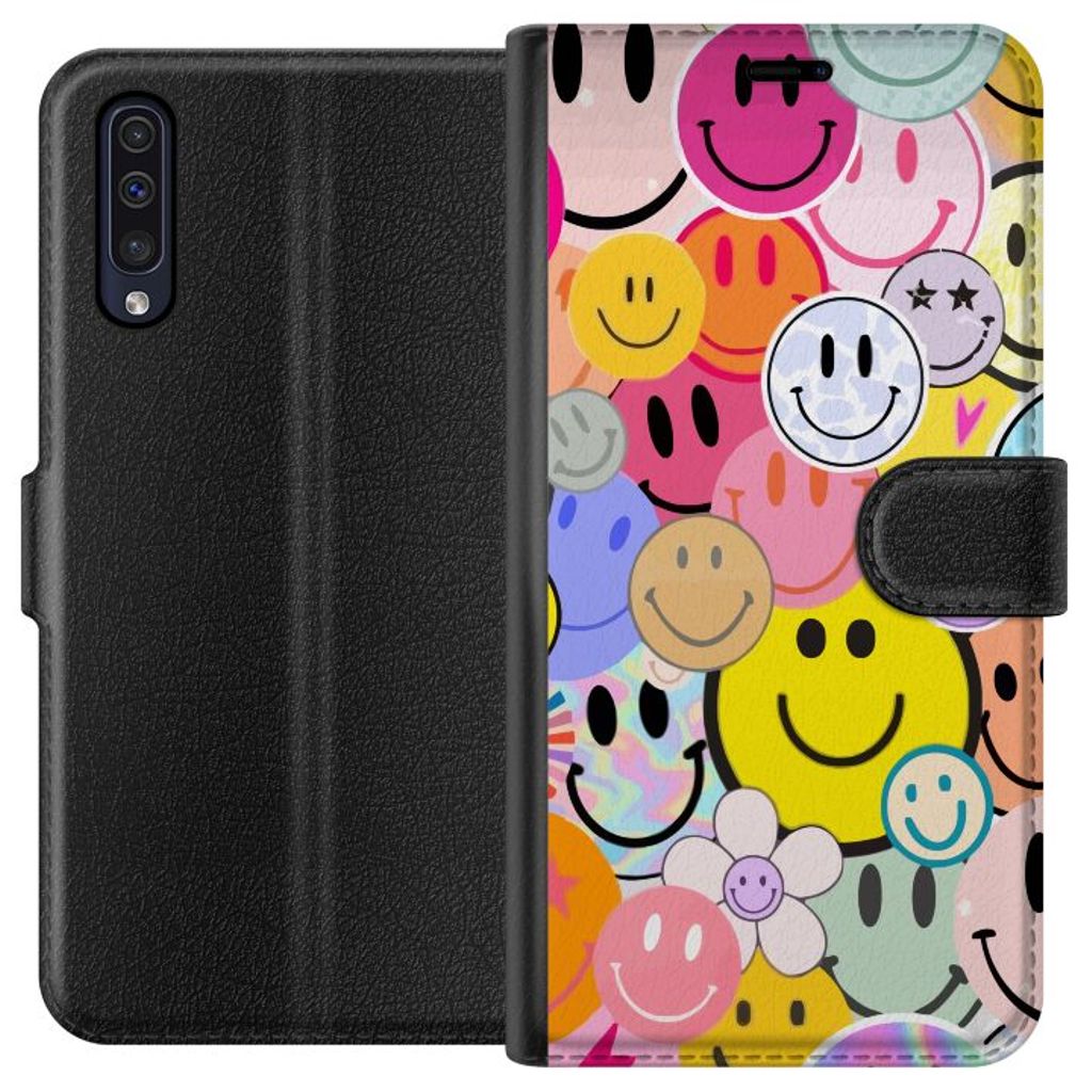 Samsung Galaxy A50 Svart Plånboksfodral Leende Ansikten