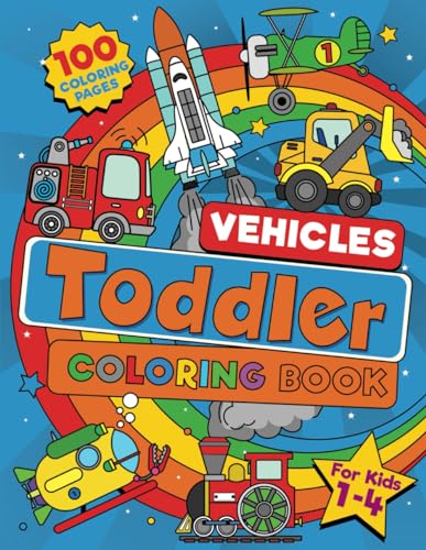 Toddler Vehicle Coloring Book: 100 BIG Pages Full of Easy to Color Vehicles – Trucks, Trains, Rescue, Space, Planes, Tractors, Diggers and More Things ... For Preschool and Kindergarten Kids Ages 1-4.