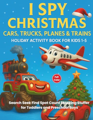 I Spy Christmas Cars Trucks Planes & Trains Holiday Activity Book for Kids 1-5: Search Seek Find Spot Count for Toddlers and Preschool Boys