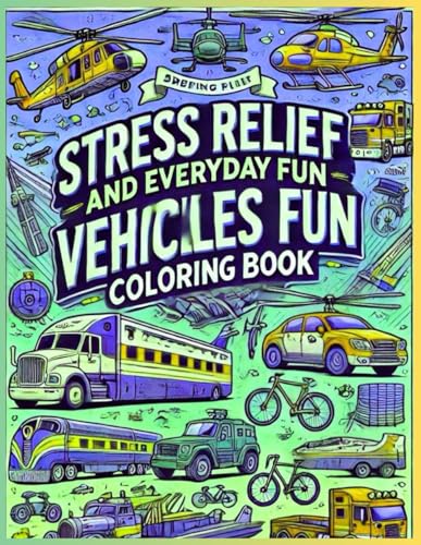 "Stress Relief Vehicles and Everyday Fun Coloring Book": "Bold and Easy Designs of Ships, Helicopters, Planes, Trains, Cars, Bikes, Trucks, and More ... Adults Coloring Book for Beginners and Teens"