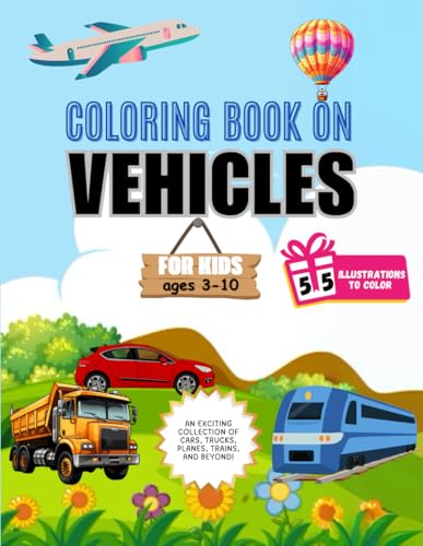 Amazing Vehicles Coloring Book for Kids: 55 Fun Designs of Cars, Trucks, Planes, Trains, and More for Kids Ages 3-10