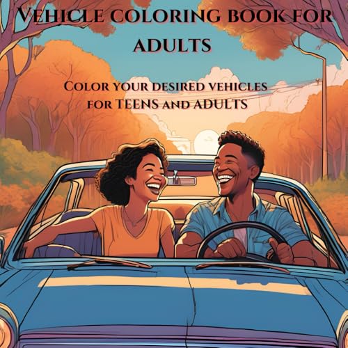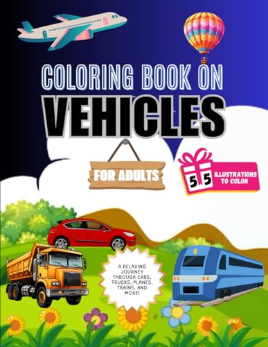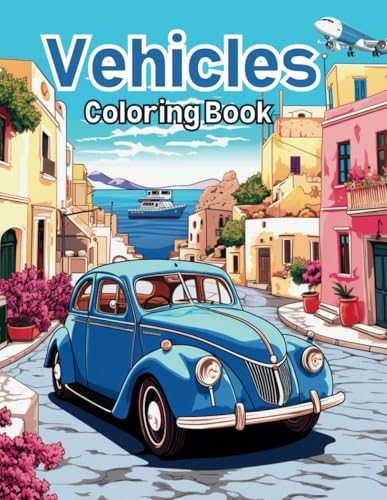 Vehicles Coloring Book for Adults, Teens and Kids: 50 Designs of Different Motors From Cars, Trucks, Trains to Boats and Planes. This is Perfect for ... of Creative Fun, Relaxation & Stress Relief..