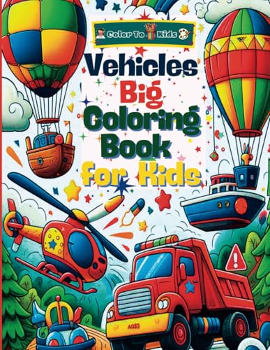 Vehicles Big Coloring Book for Kids: Amazing Vehicles From trains and planes to trucks and motorcycles, this book offers 110 pages of fun for little artists. Large format and easy to color