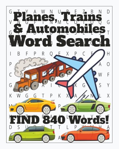 Planes, Trains, and Automobiles Word Search: Word Searches with Easy to Read Print about Airplanes, Trains, Automobiles and More I 6x9 inches, 110 ... … Gift for Vacations, Holidays and Free Times