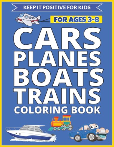 CARS, PLANES, BOATS AND TRAINS COLORING BOOK: EASY & FUN Coloring Book For Kids Ages 3 - 8
