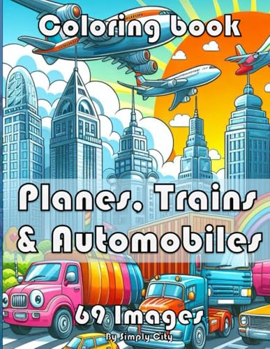 Planes, Trains & Automobiles. Coloring Book (Simply City Colouring Book): 69 images of vehicles including planes, trains, automobiles, trucks and ... Gift for Boys, Girls and Adults alike.