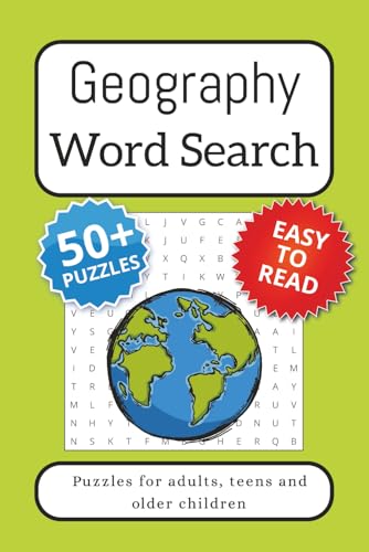 Geography Word Search Puzzle Book: Word Searches with Easy to Read Print about Geography, Topography, our Planet and more | 6x9 inches, 110 pages | ... Gift for Vacations, Holidays and Free Times