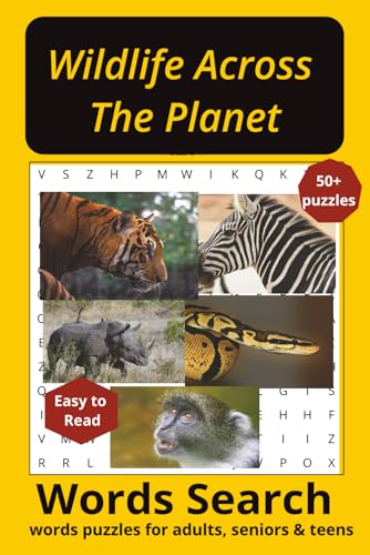 WILDLIFE ACROSS THE PLANET Words Search Puzzle Book: Words Search With Easy To Read Print about World Animals and More/ 6x9 inches, 110 pages /50+ ... Seniors for Anxiety Relief and Relaxation.
