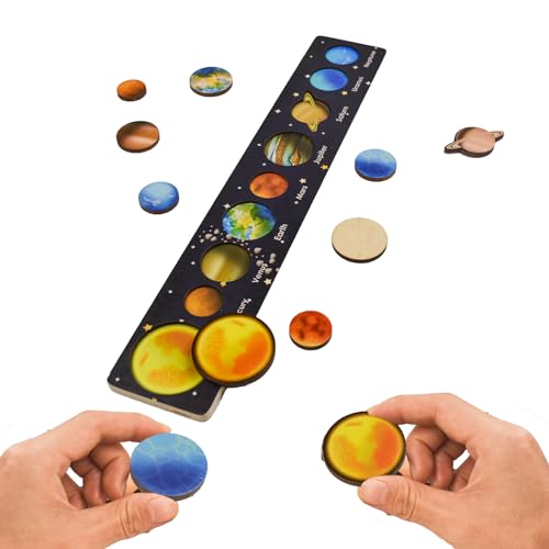 Teaque träpussel Montessori leksaker för 3-6 år gamla pojkar flickor, planeter och solsystemstema träpussel som födelsedag, jul kul pedagogiskt lärande presenter.