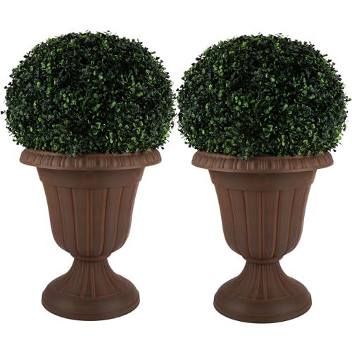 Pure Garden Outdoor Planter 2-Pack - 16x18-Inch Urn Planters - Plastic Plant Pots for Indoor, Outdoor, or Front Porch Decor - Flower Pots (Brown)