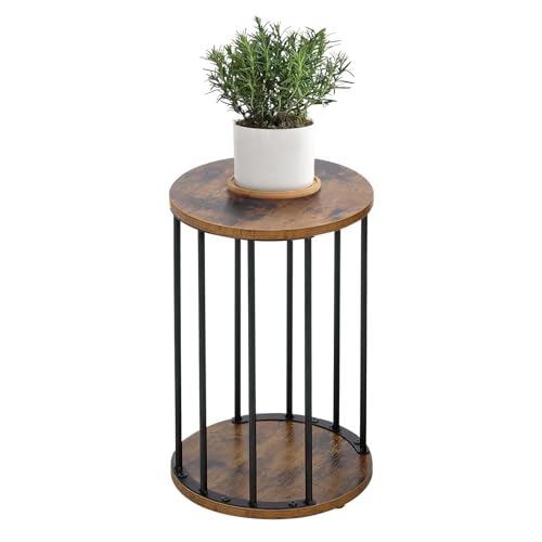 HDANI runt växtstativ metall 45 cm, solid och robust blomstativ för vardagsrum, trädgård, balkong, blompall för trä, vintage brun-svart