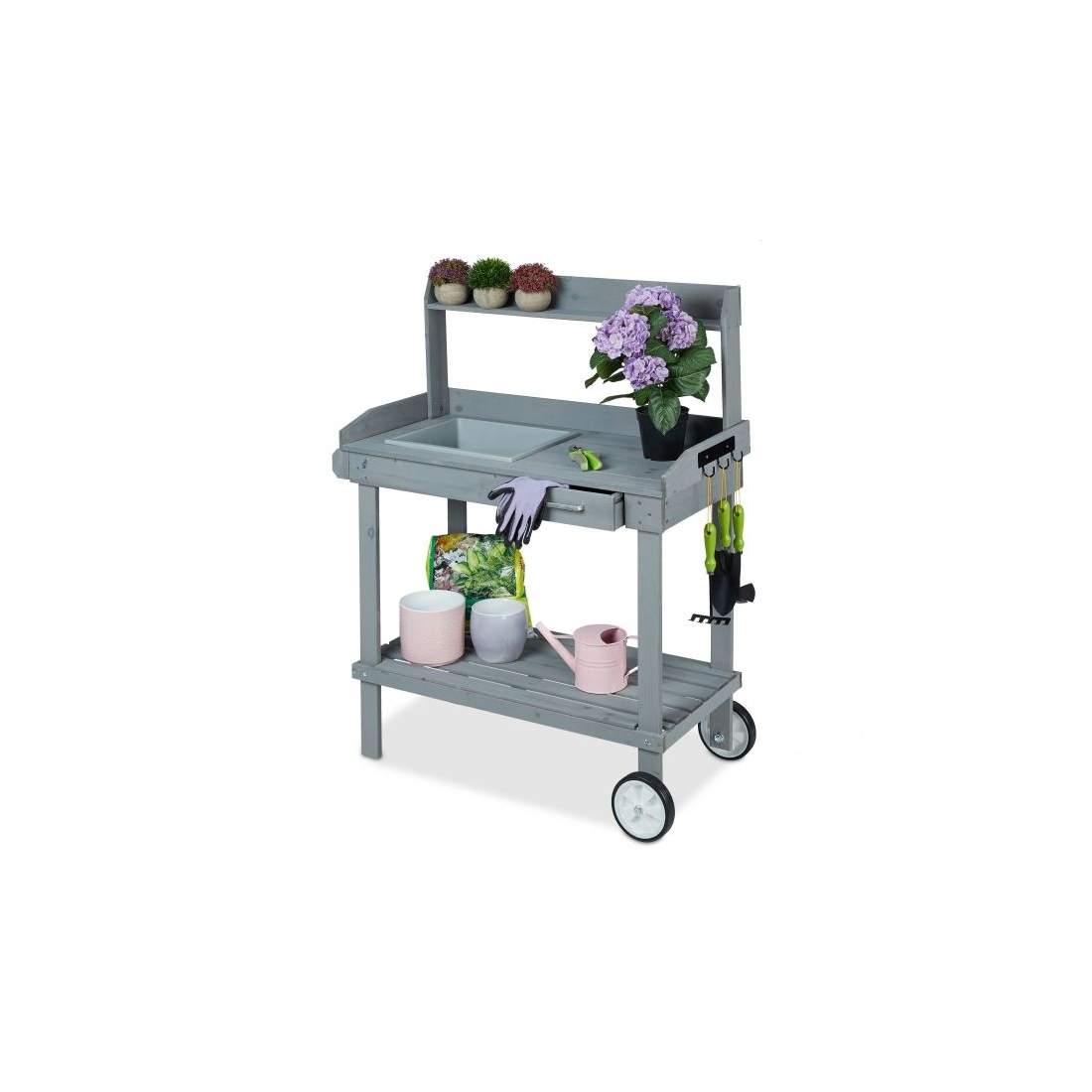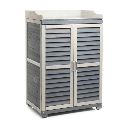 Planteringsbord 67x46,5x99,7cm i Trä med Underskåp och Bänkskiva för Trädgårdsarbete och Förvaring